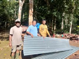 Dan dari Pemerintah Kalurahan Salam memberikan Seng pengganti Genting dikarenakan lokasi rumah ibu radiyem dekat dengan bamboo dan pohon buah buahan.