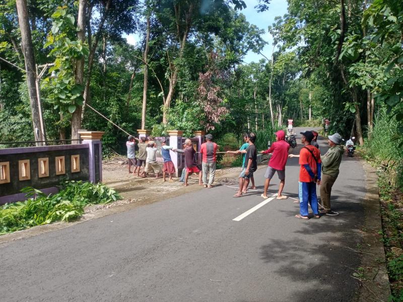 Rabas pohon diwilayah Gunungmanuk di pimpin bapak Ngasiran selaku Dukuh Padukuhan Gunungmanuk proses pemotongan atau penebangan pohon yang sudah tidak layak atau membahayakan lingkungan sekitar.