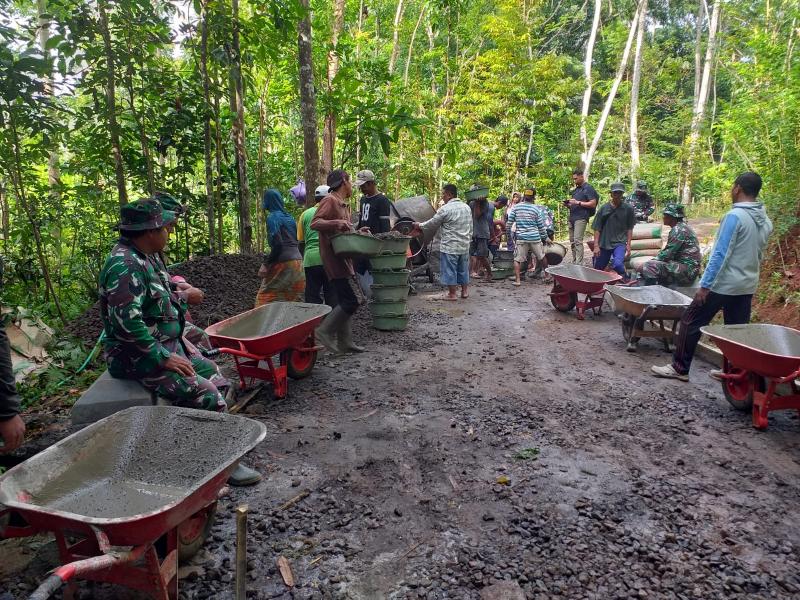 Pelaksanaan Pra-TMMD ini khususnya mengerjakan sasaran fisik seperti pembangunan Cor Rabat Jalan dengan ukuran 500m X 3m X 0,12m, Talud, Renovasi Balai Padukuhan dan RTLH.